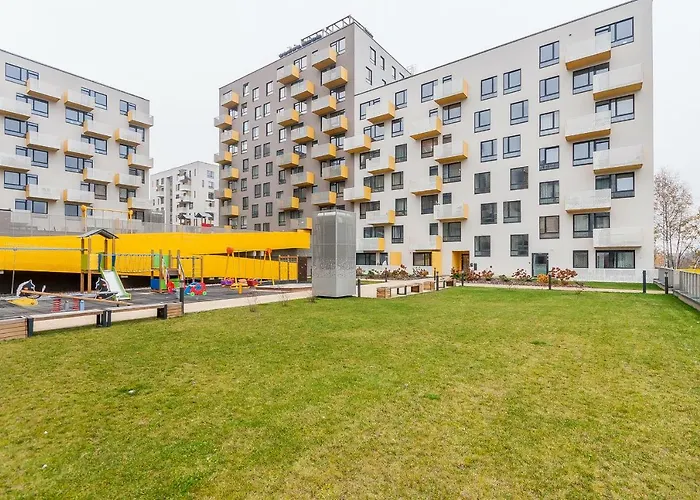Vilnius 1 Near Center With A Roof Terrace And Parking lägenhet ligger 20 minuters bilresa från Vilnius flygplats. Lekplats och lekområde finns också på plats.
